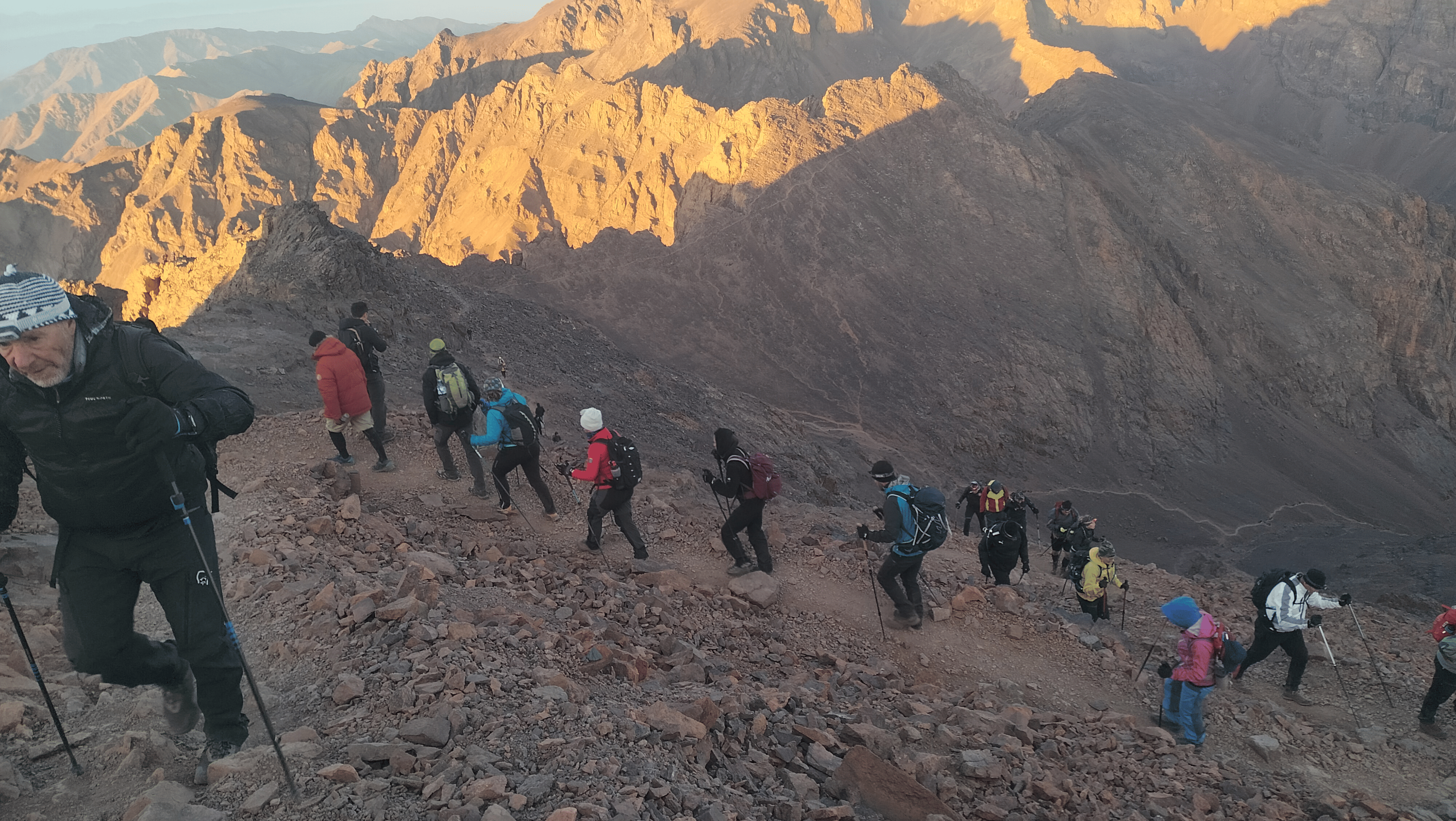 The trek involves long days of hiking and high-altitude climbs, especially the ascent of Mount Toubkal (4,167 m). A good level of fitness is required.